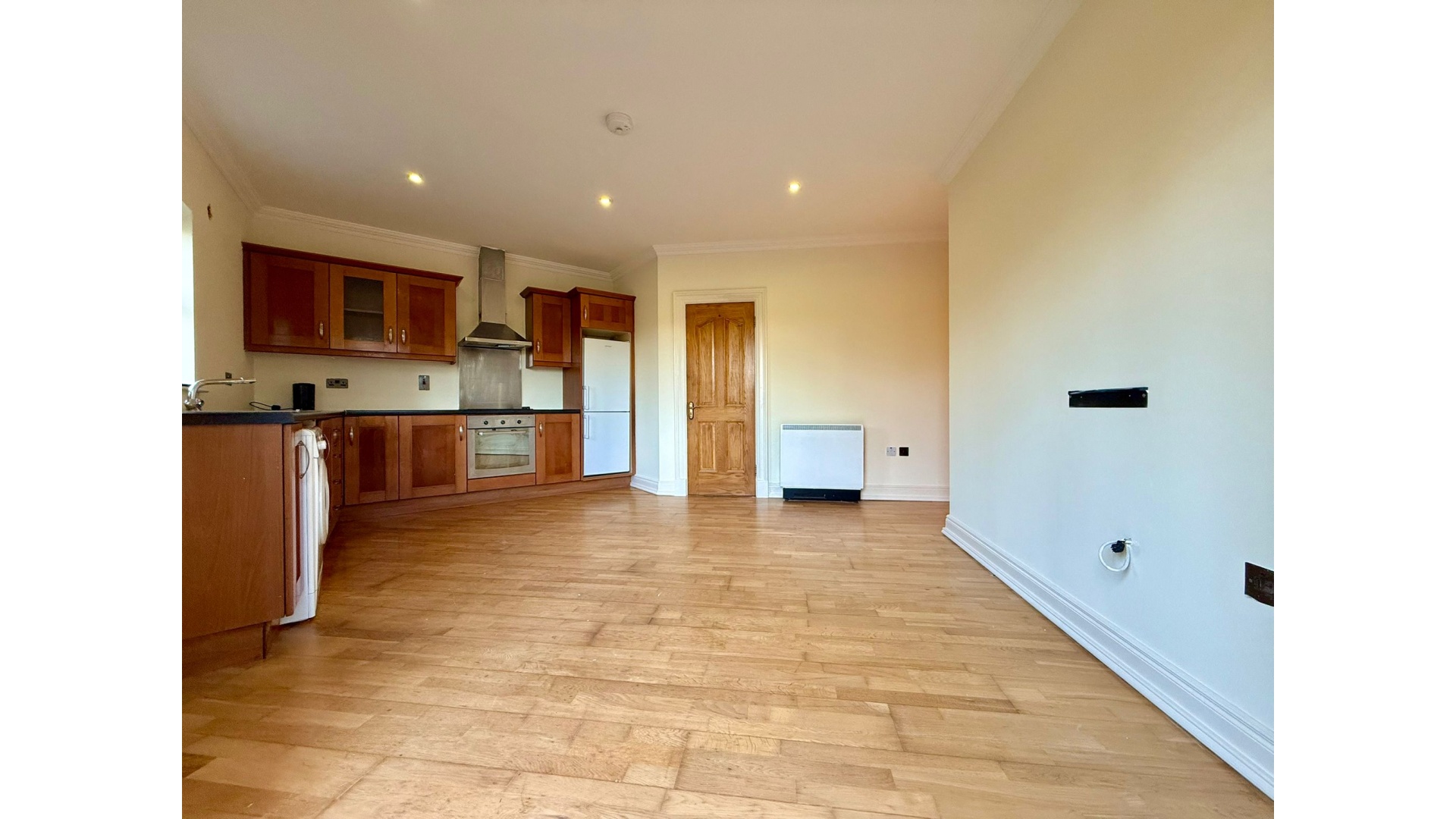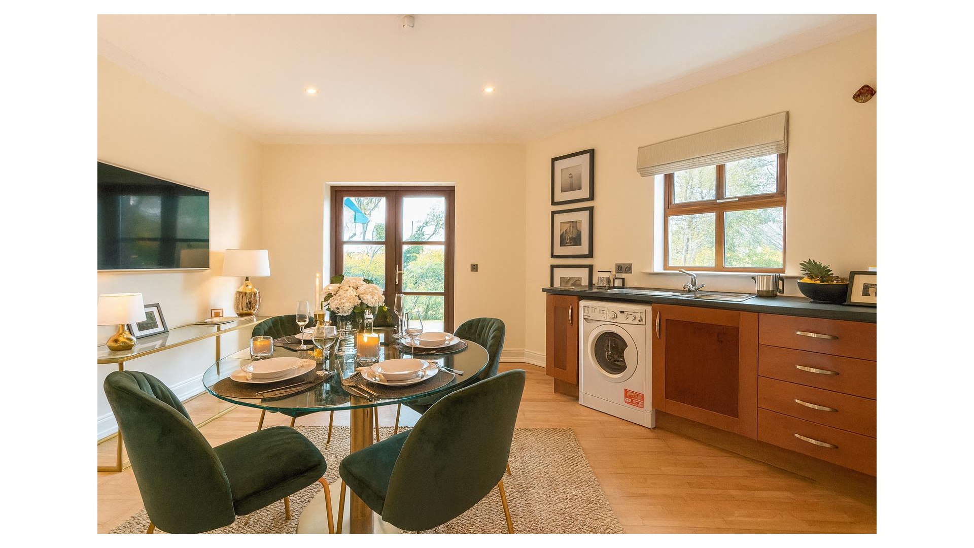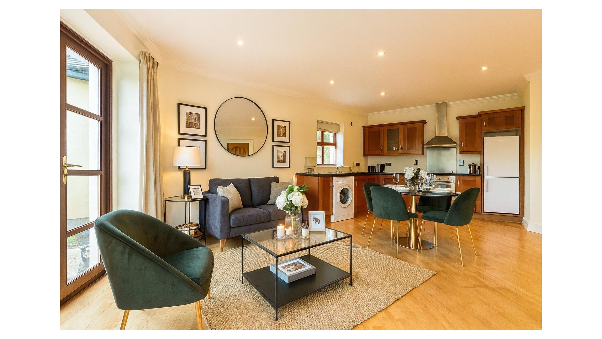 Inside, the home features a bright and airy living room / a well-equipped kitchen, two generously sized bedrooms, and a modern family bathroom. Each room is thoughtfully laid out to maximise space and natural light, creating a warm and inviting atmosphere throughout.